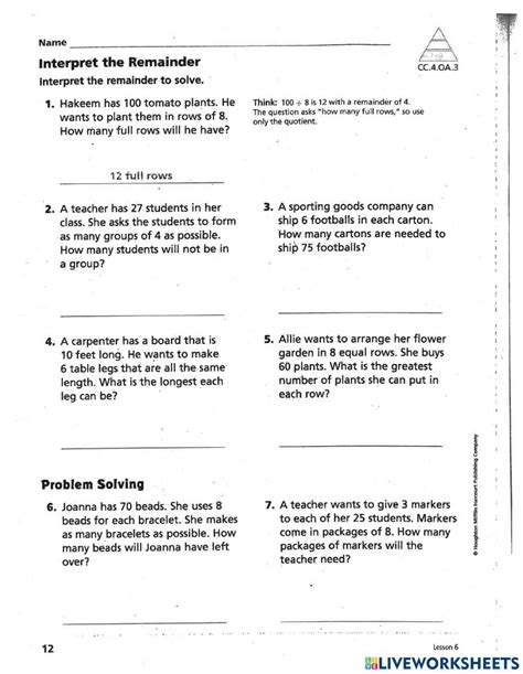 Download 6th grade math interpreting remainders 2-8 mobipocket